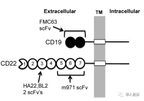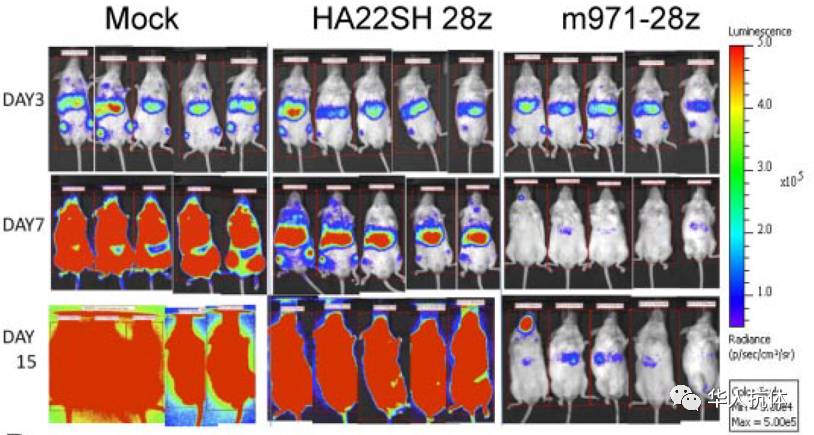 Senior Investigator Cancer and Inflammation Program Head, Protein Interactions Section, NIH Dr. Dimitrov的研究領域主要包括抗體庫展示篩選方法開發,抗體工程,蛋白生物化學,結構生物學,計算機輔助生物學,以及病毒,免疫,腫瘤生物學。 Epitope和Affinity對 CAR-T efficacy的影響 1. 不同Epitope 對CAR efficacy的影響 抗體binding epitope對CAR 的efficacy是有影響的。在Haso et al的一項研究里,他們使用了來自于兩種anti-CD22 抗體(m971和 HA22SH)的scFv構建CAR。HA22SH和m971的 binding epitope不同(圖一),m971的結合表位更接近細胞膜(membrane-proximal epitope)。兩種抗體的親和力也不一樣,HA22SH的Kd為2.3nM,m971的kd為47nM。但是在體外和體內試驗中,m971 CAR的療效都比HA22SH CAR的療效更好。圖二是用上述兩種CAR在NSG小鼠中做的efficacy試驗。Day 0:i.v. 注射NALM6-GL細胞。Day 3:每只老鼠接受1E+7 HA22SH-28z CAR,等量的m971-28z CAR,或者mock T 細胞。IVIS bioluminescence imaging:Day 3 治療之前,Day 7 和Day 15 治療之后。由圖二可見m971-28z的療效顯著優于HA22SH-28z。